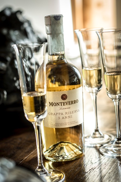 La Grappa, un lungo piacere che si ripete a ogni assaggio. Per chi ama i distillati Monteverro propone due scelte: la Grappa Bianca con aroma delicato di vinaccia fresca, erbe e olive verdi, palato potente ma rotondo con un finale di note floreali. Per gli intenditori la versione Riserva, affinata per 3 anni in barrique di rovere francese, dal colore oro tenue con riflessi ambrati, profumo ricco e intenso, con note di sottobosco, nocciolo di ciliegia, chiodi di garofano, tarte tatin, un tocco di vaniglia e panettone.