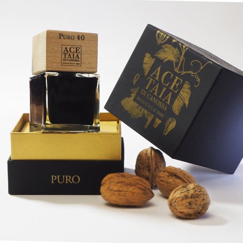 PURO, mosto d’uva cotto, invecchiato 40, un condimento davvero unico dal sapore intenso, firmato Venturini Baldini – Acetava di Canossa. Nasce dalla lenta maturazione in botti secolari. Di struttura nobile, suadente e persistente, viene utilizzato come accompagnamento per i formaggi importanti, saporiti e piccanti, ma anche con la frutta e per creme pasticcere, e gelati: un vero e proprio elisir da centellinare a fine pasto. È il regalo perfetto per chi ama le cose golose e uniche, ma anche per glie stimatori del lusso, del particolare, delle cose preziose, nella vita come in tavola!
