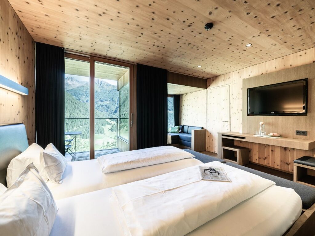 Per il nostro benessere è quindi indispensabile prestare attenzione a piccoli dettagli come la temperatura della stanza in cui dormiamo, i rumori, la lontananza da dispositivi elettronici, i materiali da cui siamo circondati. Attenzioni che sono nella filosofia del Gradonna Mountain Resort di Kals am Grossglockner in Austria, nel cuore del Parco Nazionale degli Alti Tauri. Il Gradonna è un eco-resort pluripremiato (recente è il riconoscimento ricevuto da Connoisseur Circle, la rivista di lingua tedesca che si rivolge esclusivamente ai viaggiatori di lusso dove si è classificato al primo posto come “Miglior Design&Boutique Hotel dal Lifestyle Green”) circondato dai profumi della natura e da un paesaggio straordinario.