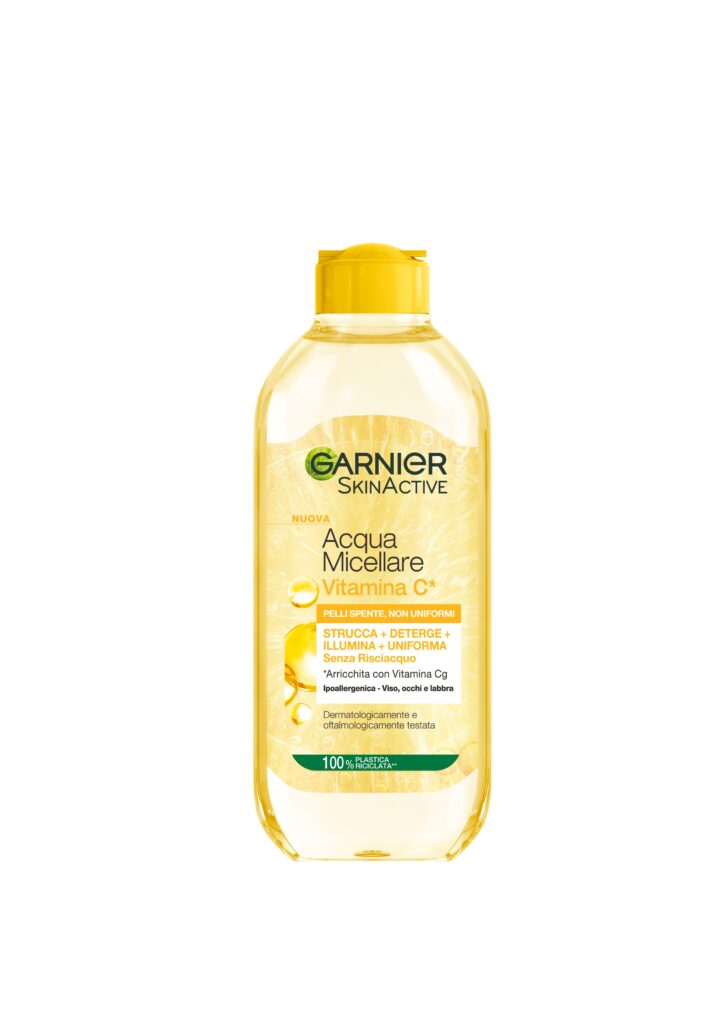 In un solo gesto, la nuova acqua micellare senza risciacquoVitamina Cg strucca, deterge, illumina e uniforma anche le pelli più spente.