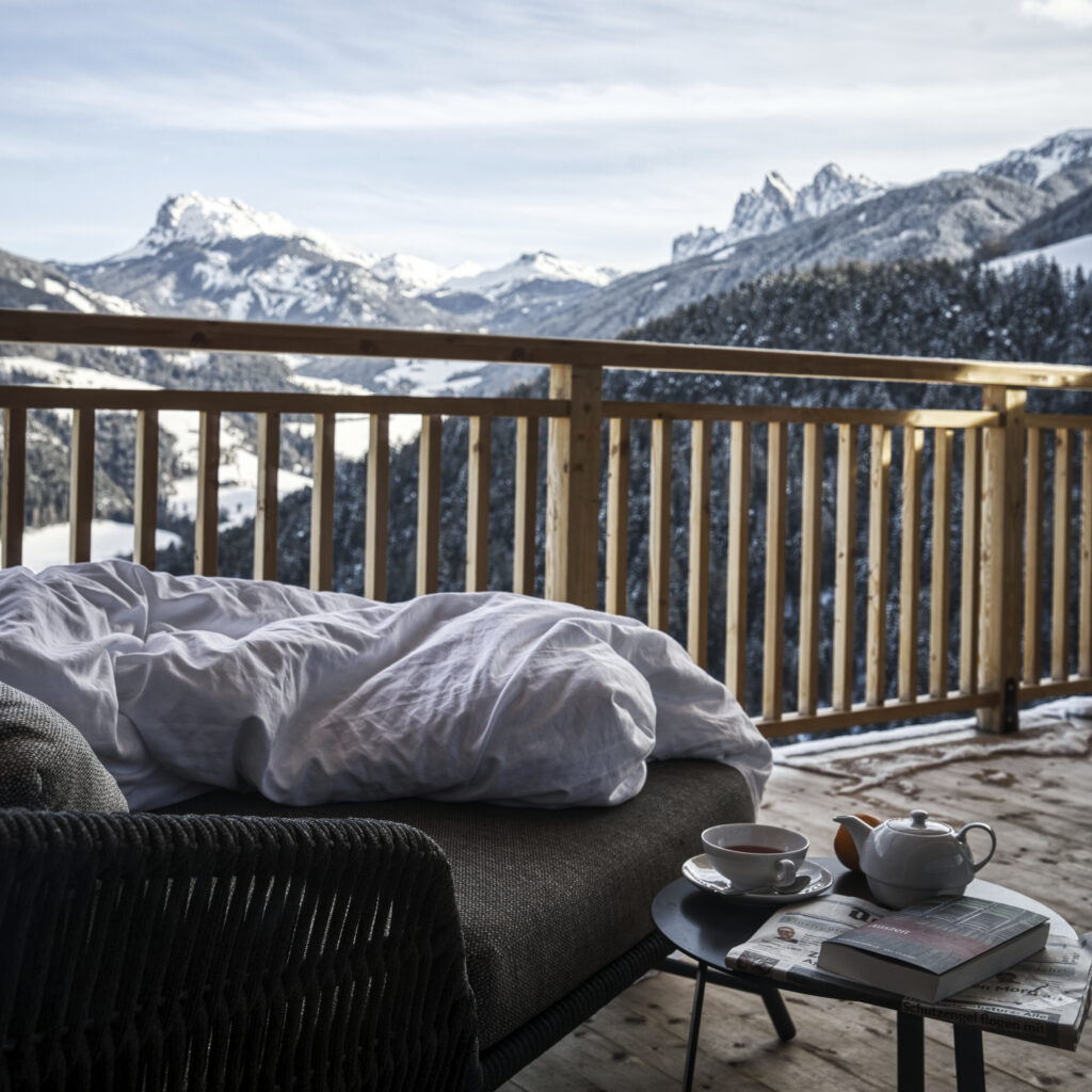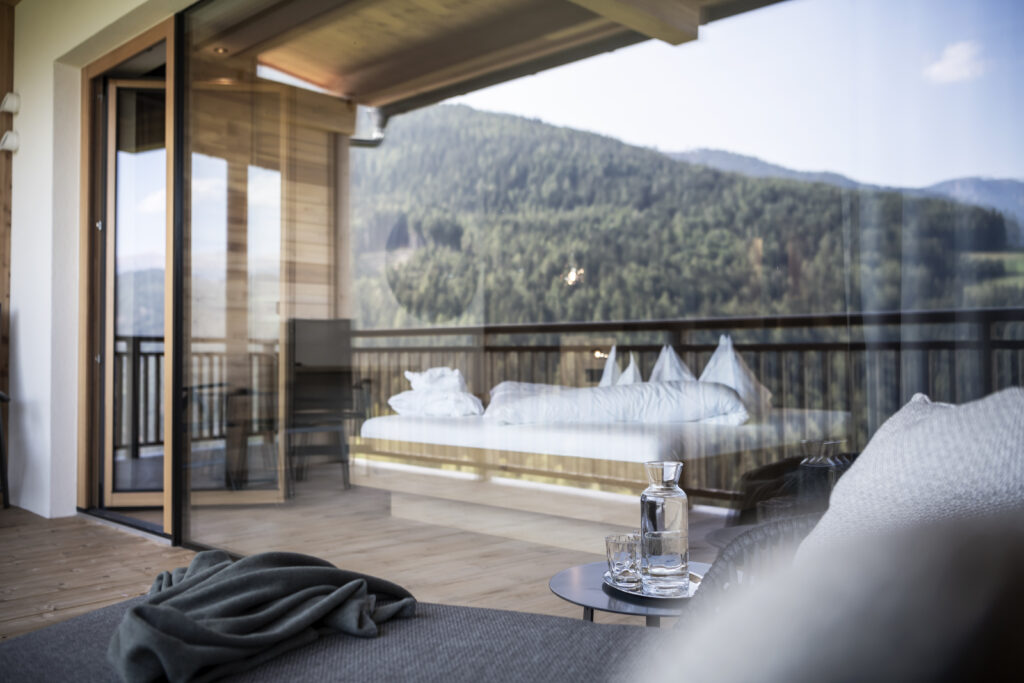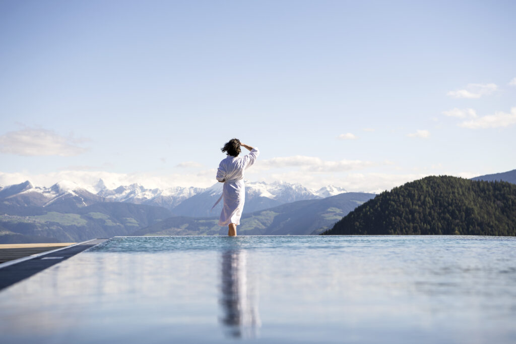 Qui è la natura a battere il tempo ed è la protagonista di ogni esperienza: la si scorge dalle immense vetrate che si affacciano sullo scenario delle Dolomiti e della Valle d’Isarco, la si ammira dalla piscina panoramica esterna a sfioro (riscaldata) e dai campi da tennis in terra rossa.
