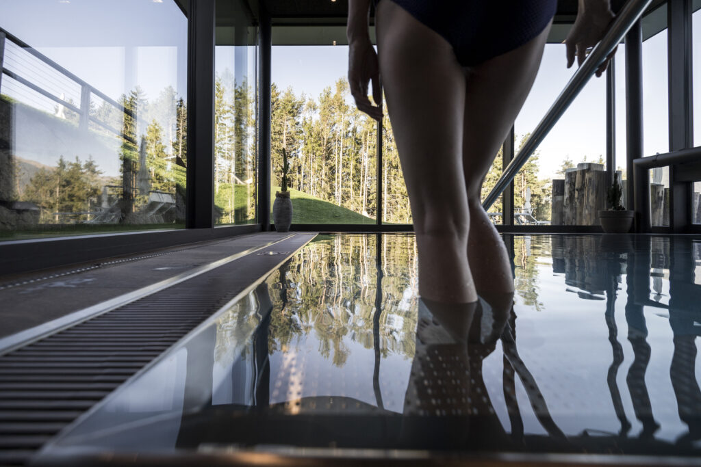 Qui è la natura a battere il tempo ed è la protagonista di ogni esperienza: la si scorge dalle immense vetrate che si affacciano sullo scenario delle Dolomiti e della Valle d’Isarco, la si ammira dalla piscina panoramica esterna a sfioro (riscaldata) e dai campi da tennis in terra rossa.