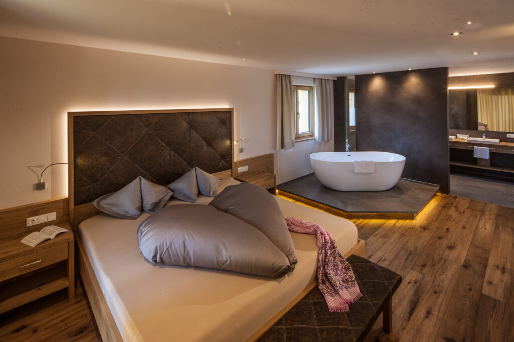 Un’oasi wellness immersa nel verde fra legno, pietra, vetro, design, in uno scenario unico: è il Gatschhof luxury suites and Spa del Romantik Hotel Turm di Fiè allo Sciliar (BZ). Un antico maso trasformato in un tempio per vacanze esclusive, quattro spaziose suite water front per un’ospitalità high-class dove ricercati dettagli, il comfort, charme fanno la differenza. La prima colazione viene servita in suite mentre la Spa con sauna e area relax permette di dedicarsi al benessere, mantenendo il contatto con la natura. Nella stessa struttura Gallaria: più di uno spazio espositivo, molto più di un ristorante gourmet, custodisce preziose espressioni artistiche e accompagna in un’audace esperienza, in cui 12 purosangue arabi sono ospitati in eleganti box e talvolta liberi di muoversi tra le opere.