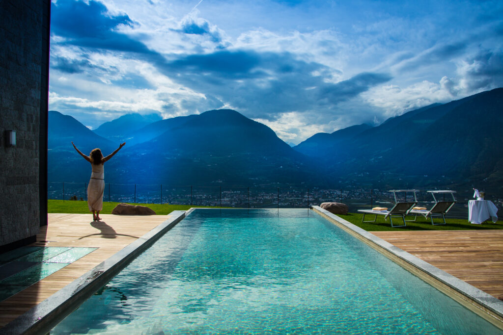 Linee sobrie, pietra, legno, Merano a pochi passi, le vette all’orizzonte. Una pausa elegante, speciale e legata alla natura si vive alla Tenuta Eichenstein del Romantik Hotel Oberwirt di Marlengo (BZ), dove è stata ricavata, in uno Chalet ultramoderno, una sola suite di 200 mq, con vasca a vista, sauna a infrarossi e Infinity pool esterna. Immerso nei boschi e vigneti, lo chalet si trova a due passi dalla cantina, tempio di bottiglie pregiate, all’enoteca che rappresenta il fiore all’occhiello della Tenuta, e dalla sala degustazione. Un vero e proprio paradiso per gli amanti del relax (e del vino).