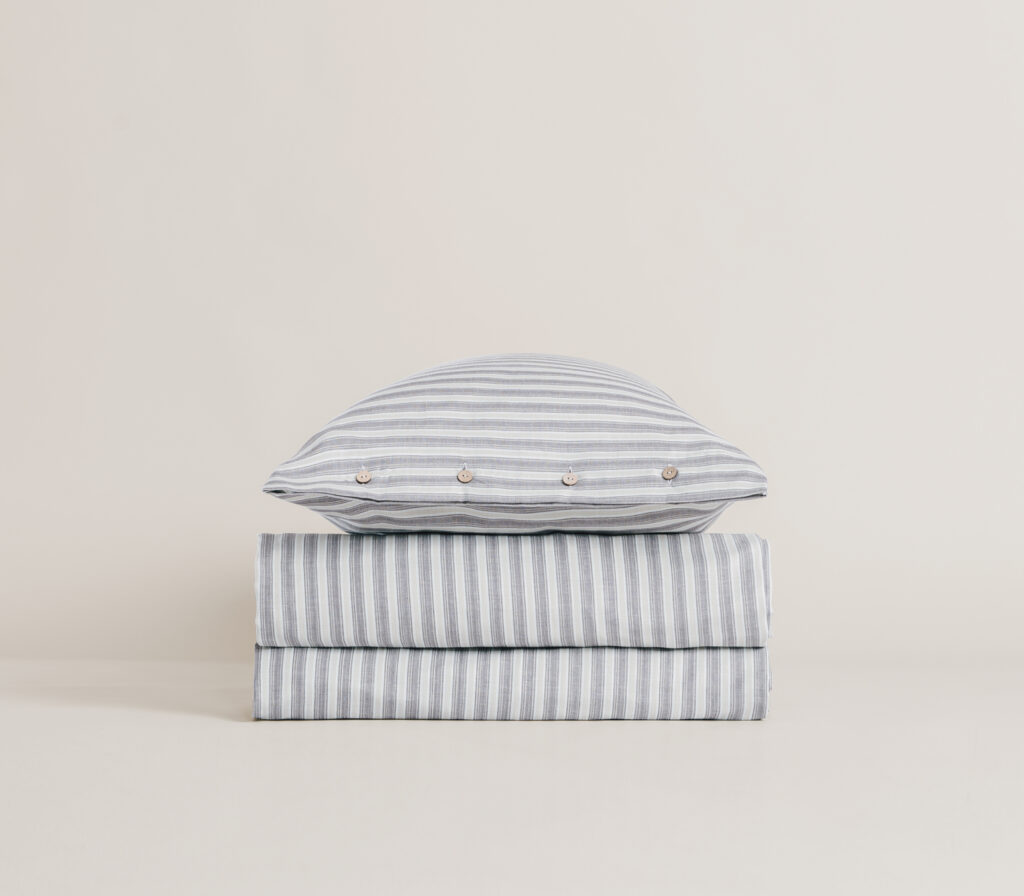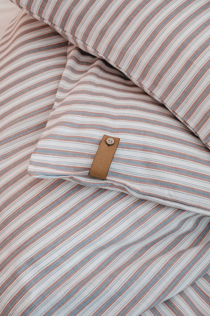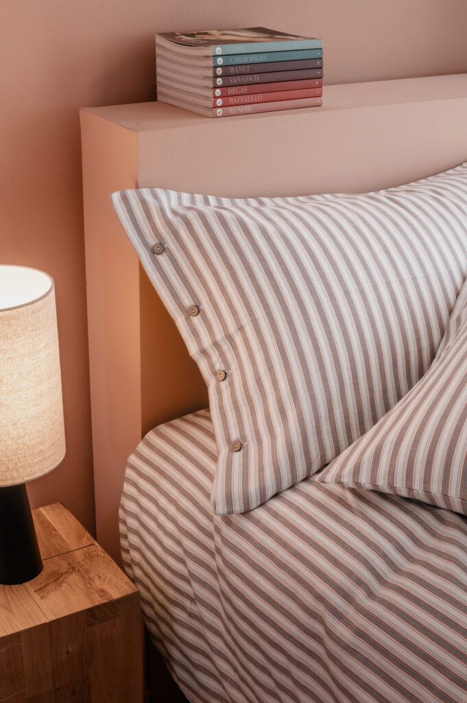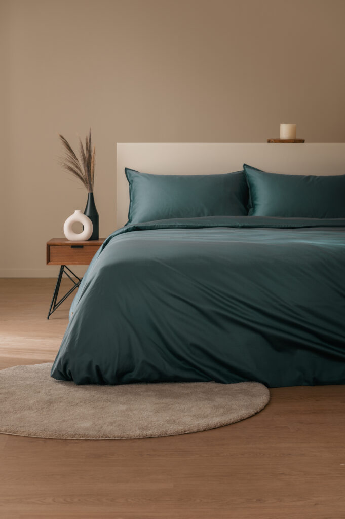 nei colori tipici di questa stagione: Giallo Ocra, Verde Petrolio e Ruggine. Il tessuto del copripiumino, in 100% puro cotone ipoallergenico, traspirante e termoregolante, assicura un riposo di alta qualità.