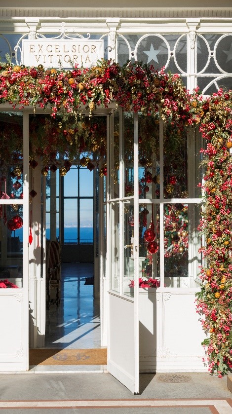 Il Grand Hotel Excelsior Vittoria, l’iconico hotel 5 stelle lusso sul golfo di Sorrento, in occasione del periodo più atteso dell’anno, si accende a festa con un allestimento unico pensato ad hoc dalla nota floral designer inglese Leanne Roberts-Hewitt del Wild About Flowers di Londra. Uno scintillio di luci e decori accoglie gli ospiti dell’hotel, avvolgendoli in un’atmosfera magica e rendendo il soggiorno ancor più indimenticabile.