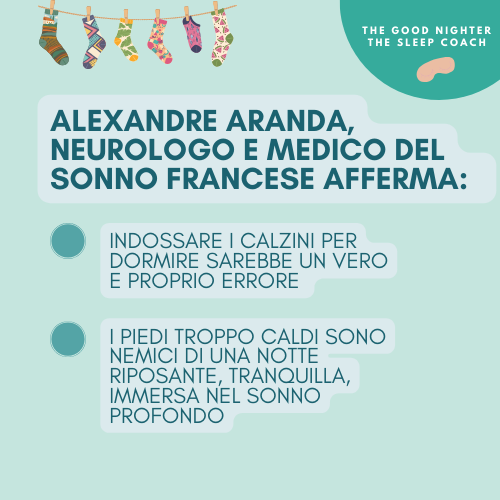 Come riportato su Elle, Alexandre Aranda, neurologo e medico del sonno francese interpellato da Madame Figaro, si è chiaramente espresso per fugare ogni dubbio: “Non solo i calzini sono nemici del buon sonno, ma gli studi dimostrano anche che – per dormire bene o meglio – dovremmo scoprire i piedi quando siamo a letto. Farlo ci permette di abbassare, o almeno di regolare, la temperatura corporea. Esattamente come fanno i bambini, che spesso dormono con un piede o una mano scoperti”.