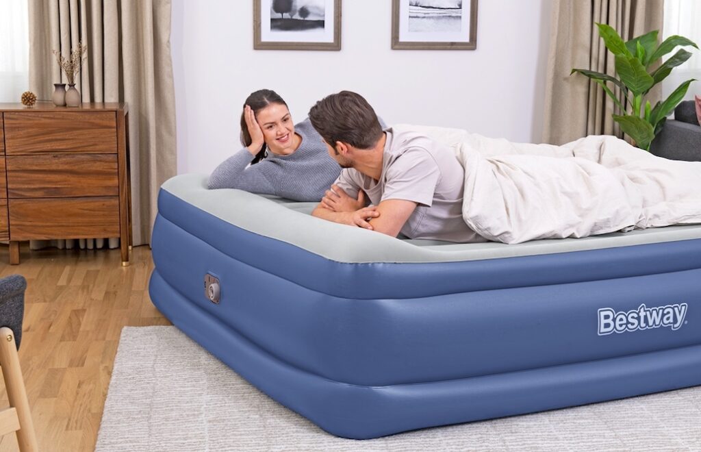 Bestway, azienda leader mondiale nella produzione di prodotti innovativi e di alta qualità per il tempo libero, presente in oltre 100 Paesi da quasi 30 anni, ha creato il materasso gonfiabile matrimoniale ad aria in Tritech™, per soddisfare le esigenze di chi desidera un letto morbido e pronto in pochi minuti. Grazie alla sua costruzione innovativa, il materasso ad aria in Tritech™promette resistenza e durata per tutta la notte, garantendo un sonno rigenerante in qualsiasi ambiente e offrendo un’esperienza di sonno senza paragoni.
