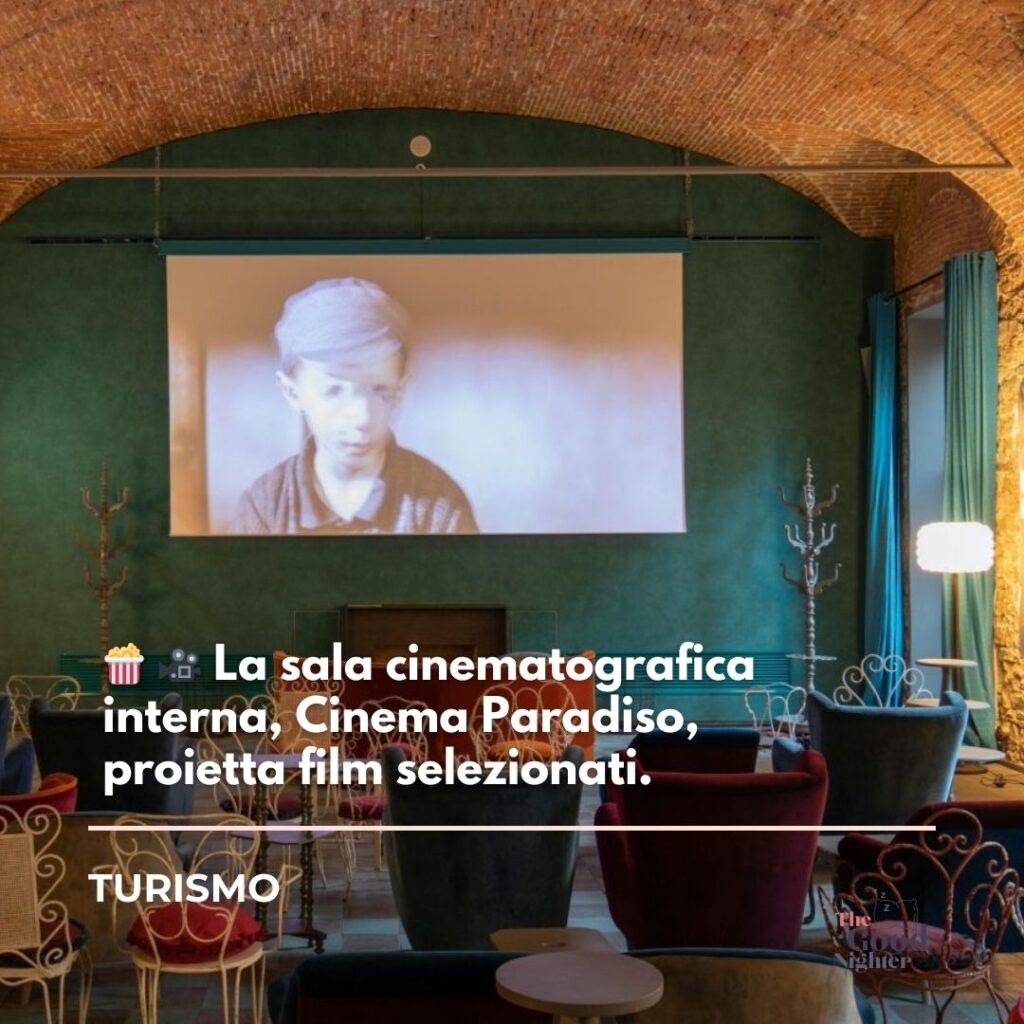 Il Cinema Paradiso si trova al piano terreno e si affaccia su una corte interna che vi trasporterà in un giardino incantato nel cuore di Firenze. La sala di 120m2 è dotata di un maxi schermo a scomparsa ed un camino per creare in un attimo un’atmosfera accogliente e rilassata. Divani e poltrone dal tocco vintage daranno al vostro evento uno stile informale e non convenzionale. I quadri che arredano la sala diventano un tavolo per 20 persone.