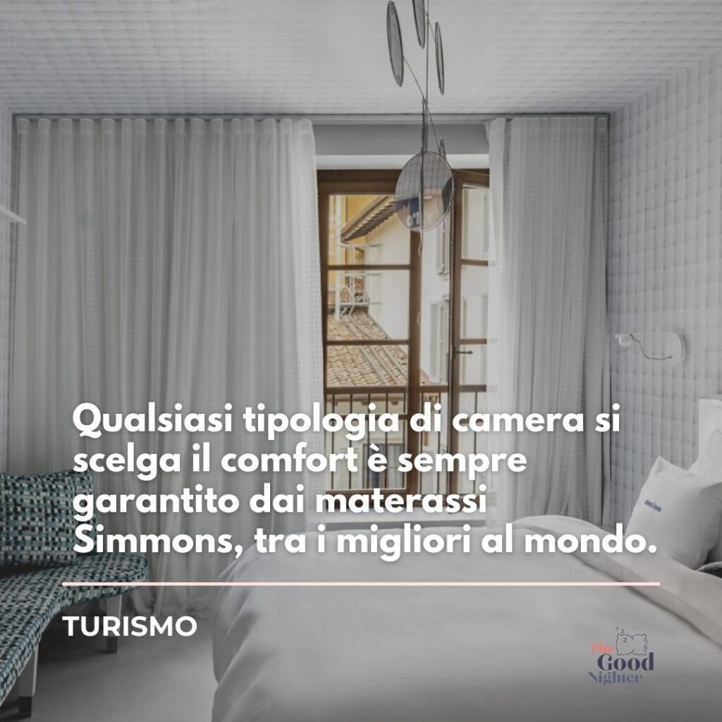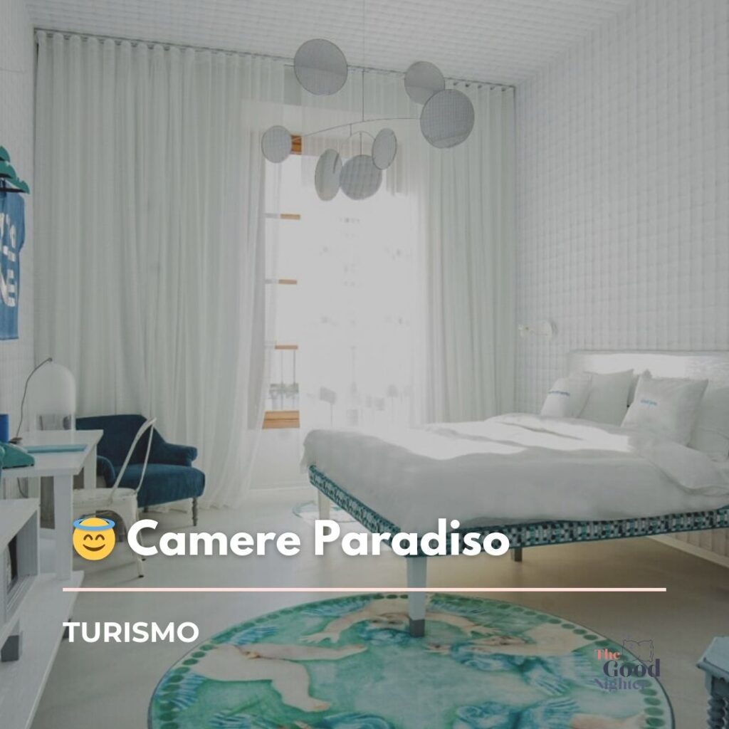 Chi sceglie il paradiso dormirà in camere dai colori algidi ed eterei con elementi che si rifanno al mondo degli angeli.
