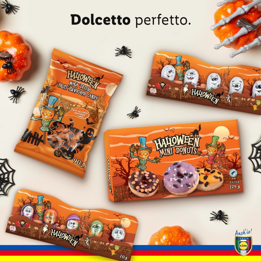 Lidl Italia trasforma la notte più spaventosa dell’anno in un vero party gourmet e fashion. I biscotti a forma di mostro, zucca e fantasma nascondono un cuore tenero di cioccolato al latte (150 g a 1,79 €), perfetti per i piccoli golosi e per rendere chic il buffet di Halloween.