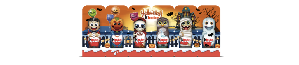 Le figure cave Kinder® tornano in versione Halloween con sei irresistibili personaggi: vampiro, zucca, teschio, gufo, mummia e fantasmino. Oltre a essere deliziose, sono anche interattive: ogni figura può trasformarsi in un biglietto-invito personalizzato per la propria festa mostruosa!